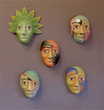 being bisque fired, they are airbrushed and painted with underglazes. This involves at least two more firings, sometimes more. After this, a thin coat of transparent glaze is applied, and they are fired for a final time. I use forms and imagery from nature, including the human figure, which I adapt to fit my needs and whims; and I have a love of color and texture. My goal is to create sculptural work in which the natural world is viewed as marvelous and beautiful; as something to be honored and protected. My desire is to produce pieces that have beauty, fantasy, and an element of soft surprise.